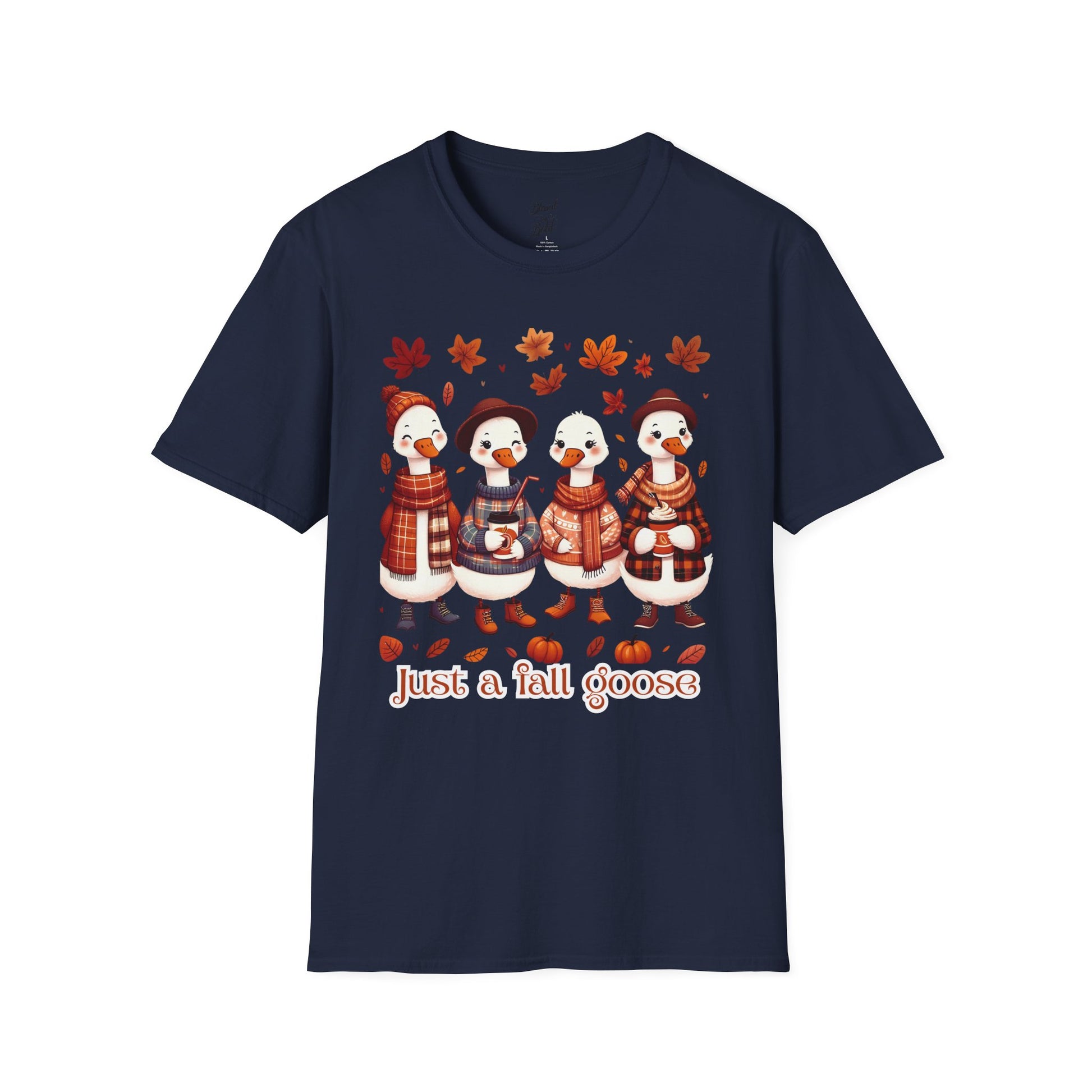 This softstyle T-shirt featuring a design of 'Just a Fall Goose' exudes a cozy and laid-back vibe, perfect for casual wear during the fall season. It is ideal for adults who appreciate comfortable and stylish clothing, especially for Thanksgiving and autumn-themed gatherings.