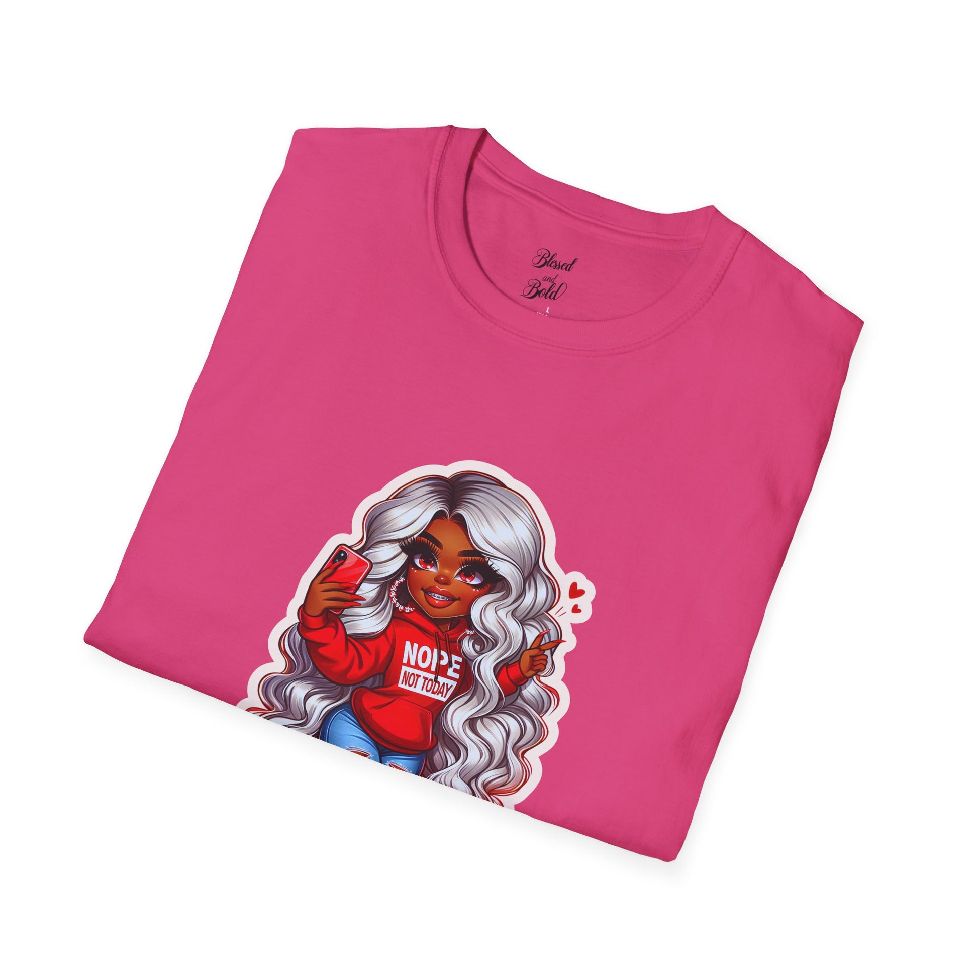 A comfy and versatile unisex T-shirt with a humorous 'Nope Not Today' design. Perfect for those looking for a casual yet stylish addition to their wardrobe. Ideal for adults looking to express their sassy and carefree attitude. Great for everyday wear or as a fun gift for birthdays, holidays, or just because.