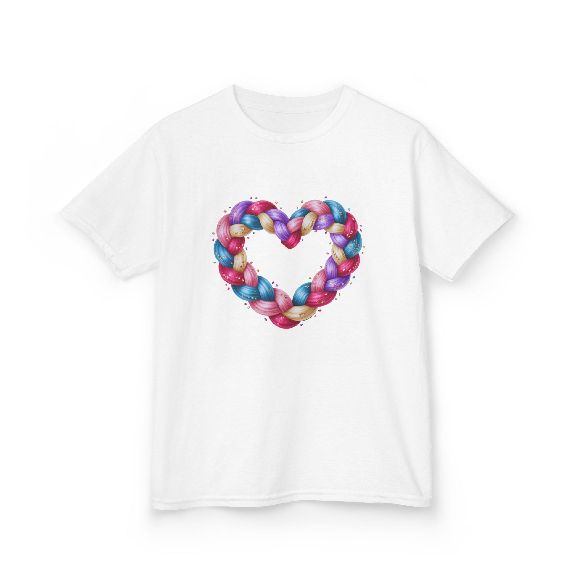 - DTF/DTG printed pastel heart graphic; age-appropriate sizing and ethically sourced cotton