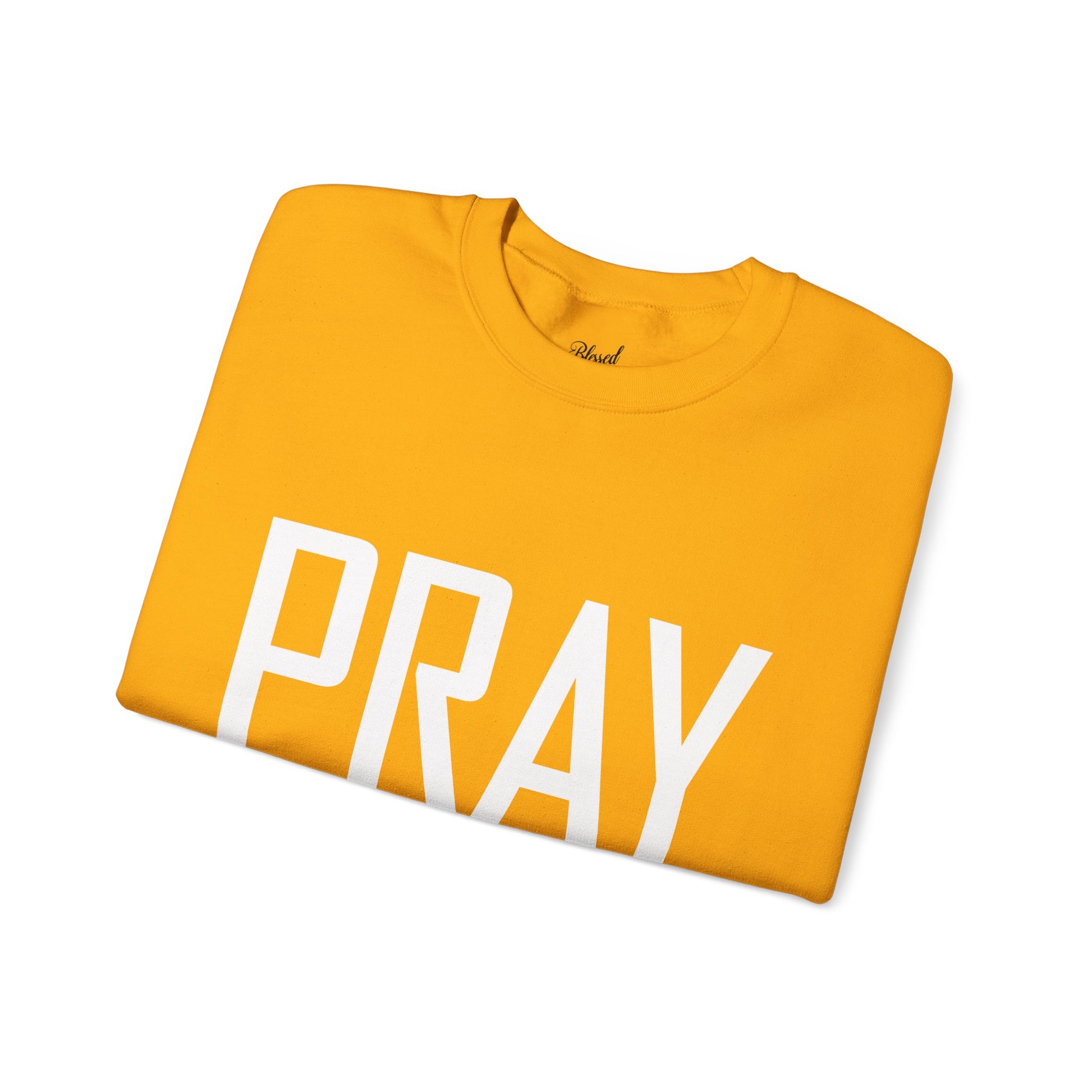 A cozy and durable sweatshirt with the word 'PRAY' embroidered on it, perfect for adding a touch of spirituality to your outfit. Ideal for adults looking for comfort and style. Relevant for religious holidays, prayer gatherings, and spiritual occasions.
