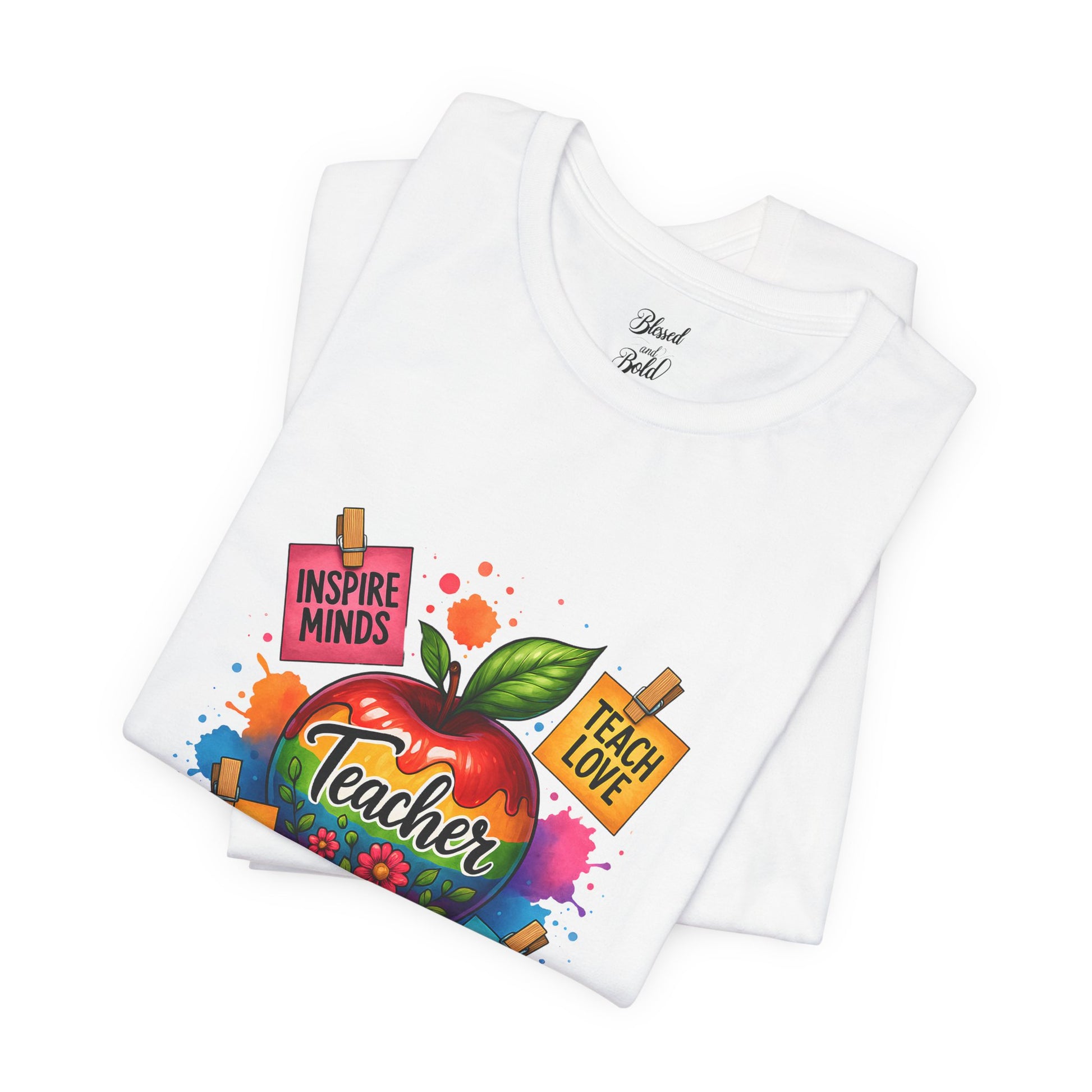 A classic unisex jersey short sleeve tee with a 'Teacher' design, perfect for educators to wear with pride. This lightweight tee is made with 100% Airlume combed and ring-spun cotton, offering breathability and comfort for active or leisure wear. The retail fit and crew neckline make it versatile for casual and semi-formal settings, ideal for accessorizing.